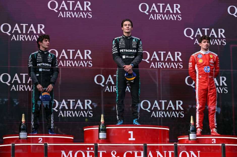 A Mercedes novamente garantiu uma dobradinha com Russell em segundo, enquanto Lewis Hamilton terminou em terceiro e finalmente conquistou seu primeiro pódio com a Ferrari, um resultado que parece tirar um peso enorme das costas do heptacampeão nessa nova fase.