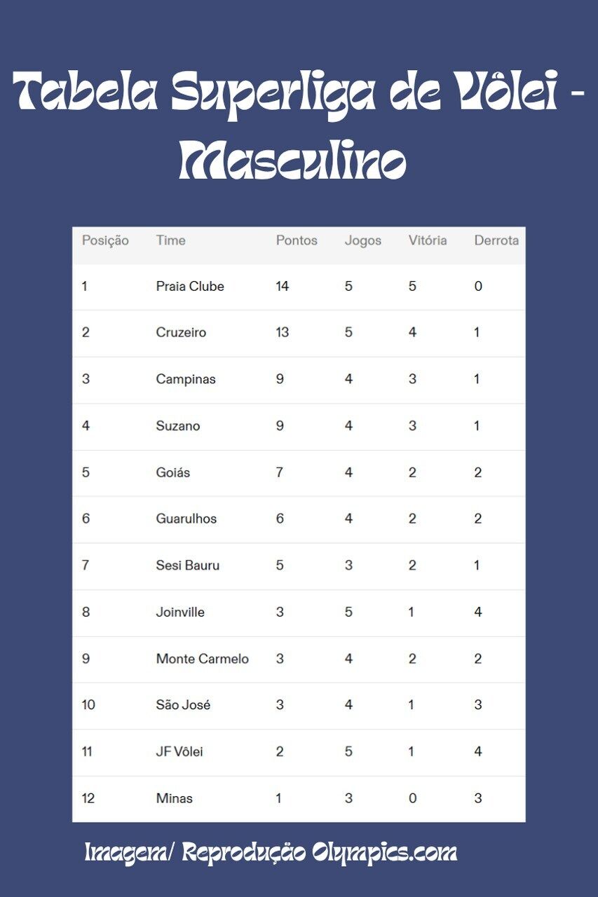 Confira abaixo a tabela da Superliga Masculina de Vôlei: