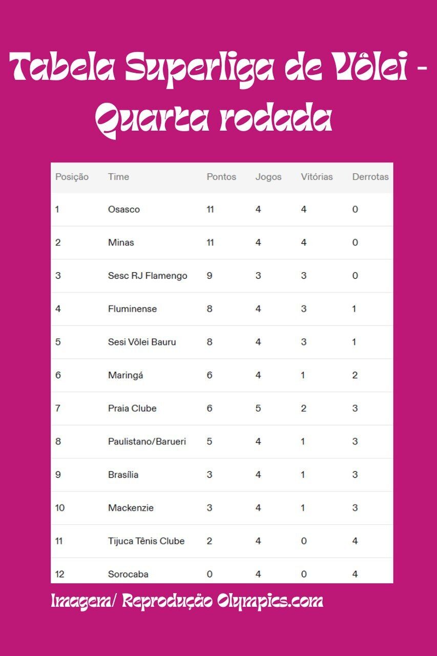 Confira abaixo a tabela da Superliga Feminina de Vôlei na quarta rodada: